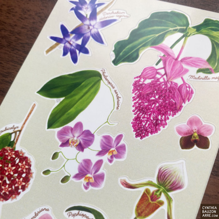 Decorate your everyday gear with beautiful Philippine native orchids and epiphytes. This waterproof vinyl sticker sheet showcases these dramatic climbing plants including the magnificent Hoya pubicalyx, Medinilla magnifica, Dendrobium victoriae-reginae, and more. Great for adding a touch of forest drama to your laptops, bottles, planners, and field notebooks.