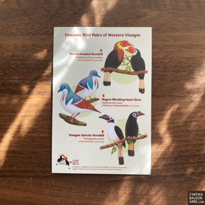 Celebrate love and conservation with the Talarak Endemic Bird Pairs of Western Visayas Collection featuring male-female pairs of endangered bird species ~ the Rufous-headed Hornbill (Rhabdotorrhinus waldeni), Negros Bleeding-heart (Gallicolumba keayi), and Visayan Tarictic Hornbill (Penelopides panini) with scientific names and IUCN statuses – illustrated for and guided by Talarak Foundation. These monogamous species form lifelong bonds and are wonderful symbols of enduring commitment. <3